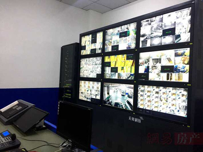 在监控中心,消防控制系统、安全监控系统、电梯通话系统等集中安装在监控中心内,室内干燥、通风、安全;铺静电地板,安装空调、沙窗、档鼠板,配备灭火器等。全部监视监控都正常运行,天健的工作人员调侃着,“要是有客人在我们的监控范围内摔倒,我们监控到,马上就会有工作人员上去扶起来的。”可见,天健物业的用心。