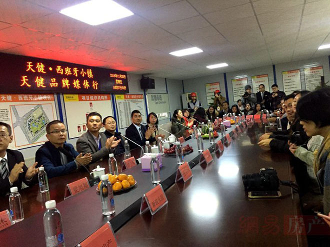媒体一行在天健西班牙小镇营销中心门口合影留念。