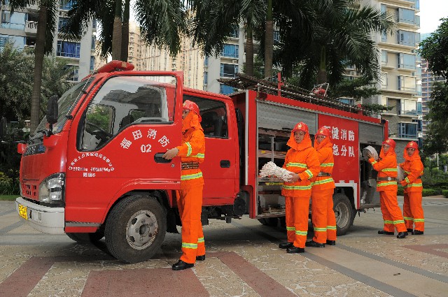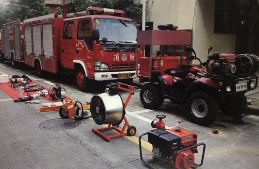 安全应急救援队编制共30人,其中景田片区15人,龙岗片区15人。该队成员均为各个项目的安保队伍中精选出来的退役军人,每人均持有构建(物)消防员上岗证。在硬件装备上,公司逐年追加投入,先后配备了消防水泵车1台、消防巡逻电瓶车1台,以及液压破拆工作组、生命探测仪、有毒气检测仪、机动链锯、无齿锯、空气呼吸器等专业消防救援器材。