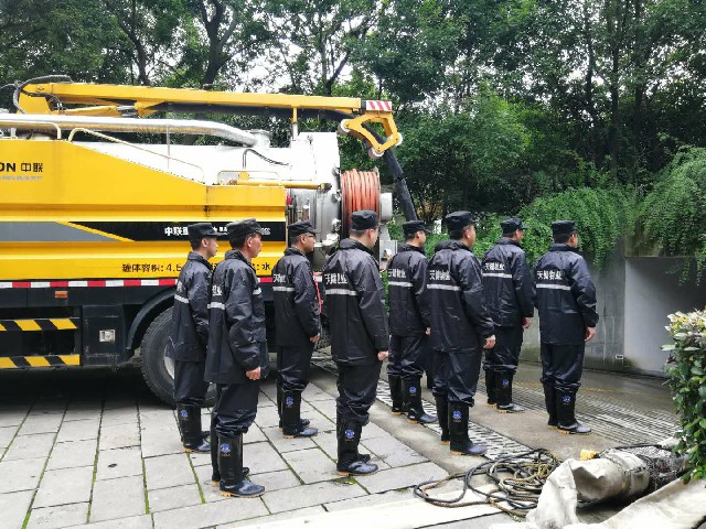 演习中,巡逻人员发现停车场低洼处积水严重,迅速将险情上报项目负责人。应急队伍在接到指示后携带排水设备赶往现场开展排涝抢险工作。设立警示隔离标识,将水泵放入“排涝区”,接管、引水、启动、快速抽排“积水”。半个小时后,险情顺利解除,演习结束。