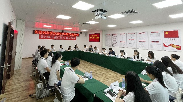 7月19日至23日,天健城市服务在鲁班大厦党群活动中心组织开展为期五天的2021届健习生入职培训。培训前,公司召开迎新主题座谈会,与28名健习生面对面交流,副总经理任小东与职能部门负责人、员工代表以及优秀健习生代表参加会议。