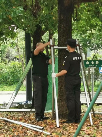 为降低台风对绿植的影响,华东区域公司提前部署,着重加强绿化养护项目的绿植防护工作,对大型树木提前加固,安排人手随时巡逻,发现险情及时处理。绍兴越城古城西片区园内种植有数株珍贵的乔木以及其他名树,物业立刻安排人手对这些树木进行了支撑处理,并调动抽水机以备不时之需。