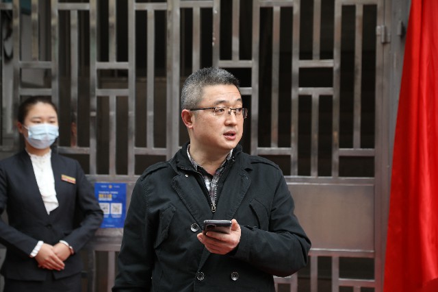 莲花街道办事处副主任谭弦致辞,2021年初,莲花街道推进“物业城市”改革试点,和“城市运营商”天健城市服务公司共同探索城市治理新模式。2021年10月,基于“物业城市”的成功实践,莲花街道再度携手天健城市服务公司和下梅林股份有限公司,引进城中村“3+”物业管理新模式,即植入物业管理体系,导入企业管理标准,引进职业管理团队。本次揭牌,标志着新梅物业综合服务中心投入使用和“3+”物业管理模式正式落地,开启城中村精细化管理新篇章。