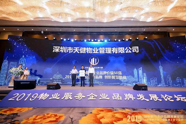 6月20日,由中国物业管理协会主办的2019物业服务企业品牌发展论坛暨全国物业管理行业媒体工作交流会在重庆隆重召开。会议发布了《2019物业服务企业品牌价值测评报告》,天健城市服务凭借良好的口碑、较强的品牌影响力、强劲的品牌竞争力及品牌溢价荣获“2019物业服务企业品牌价值50强”、“城市更新专业保障服务·2019特色物业服务品牌企业”两项行业权威殊荣。
