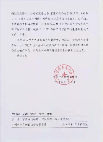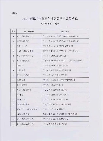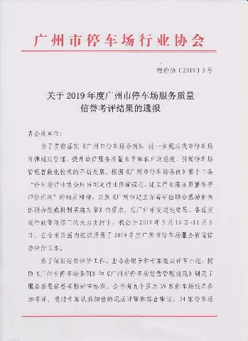 为进一步规范广州市停车场的自律规范管理,提升诚信服务质量水平和客户满意度,广州市停车场行业协会于2019年5月开展“2019年度广州市停车场服务质量信誉”评审工作,共有34家停车场通过评审。其中,深圳区域公司所属项目广州天健上城获评“2019年度广州市停车场服务质量诚信单位”。